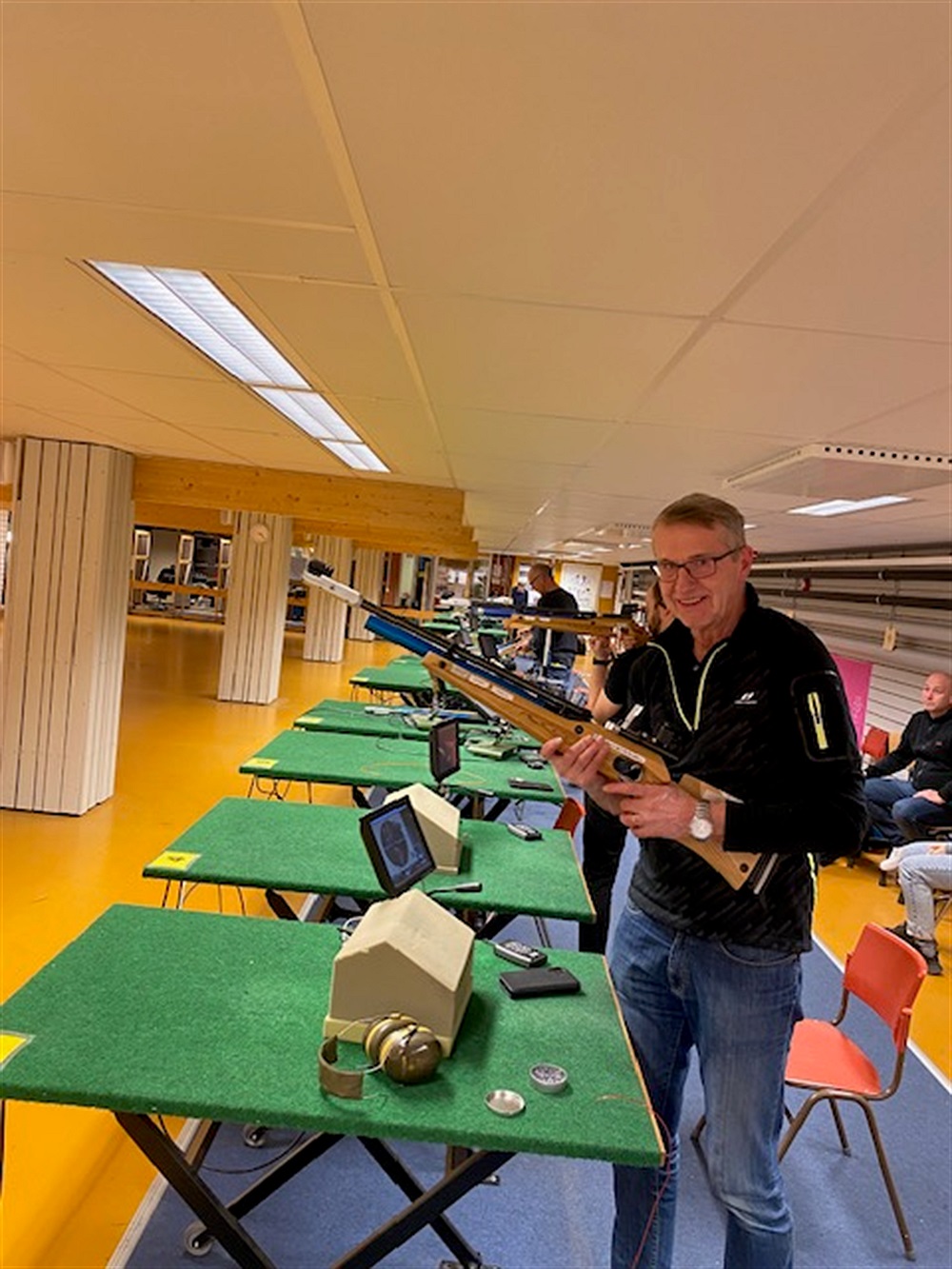 Föreningsmästaren i luftpistol Lennart C testar luftgevär.